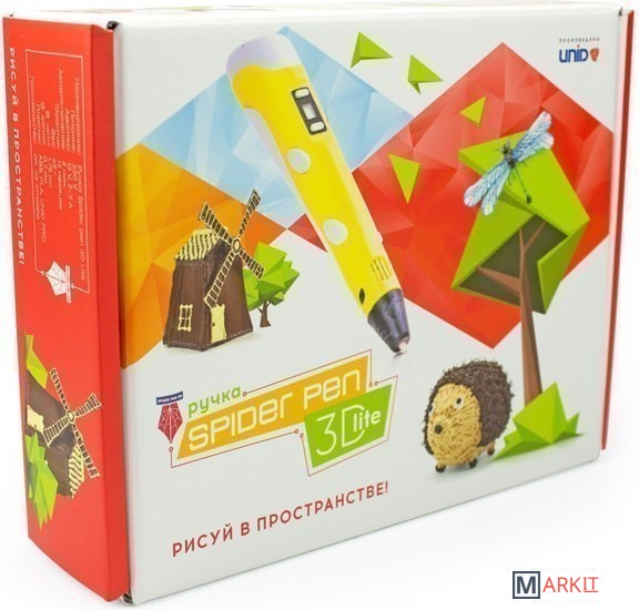 Комплектация - 3D ручка Spider Pen LITE с ЖК-дисплеем;- Блок питания 12V 2A/3A;- Демо-пластик 10 метров;- документация.