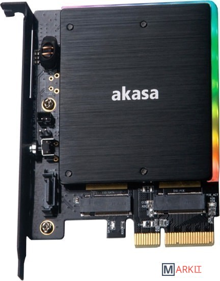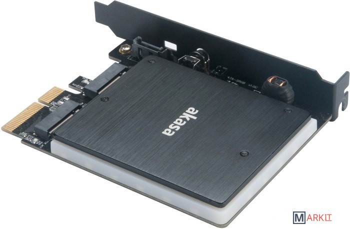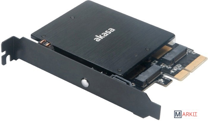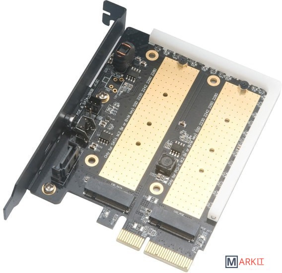 Переходник для подключения одного M.2 SATA SSD и одного M.2 PCIe SSD к разъему PCI-E x4 компьютера.