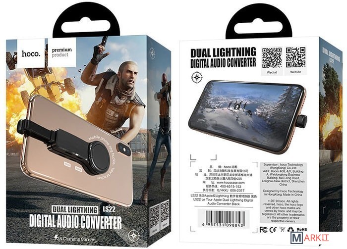 Устройство Hoco LS22 подключается к смартфону через порт Lightning и распределят его на два выхода: под зарядное устройство Lightning и под наушники с таким же выходом. Т.е. позволяет одновременно заряжать смартфон при этом используя наушники. В конструкции имеется кольцо для более удобного держания в руке и использования в качестве подставки.