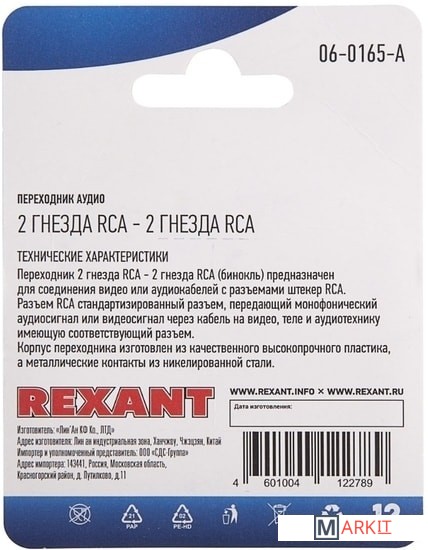 Markit » Кабели, адаптеры, разветвители » Адаптер Rexant 06-0165-A