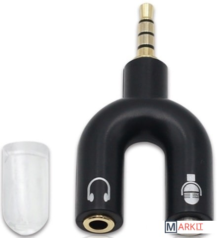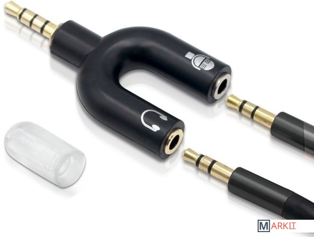 Переходник jack 3.5mm на 2x jack 3.5mm (наушники / микрофон) – для подключения гарнитуры с микрофоном с разъему jack 3.5mm ноутбука, компьютера, смартфона и др. техники