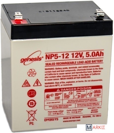 Markit » Аккумуляторы для ИБП » Аккумулятор для ИБП EnerSys Genesis NP5-12 (12В/5 А·ч)