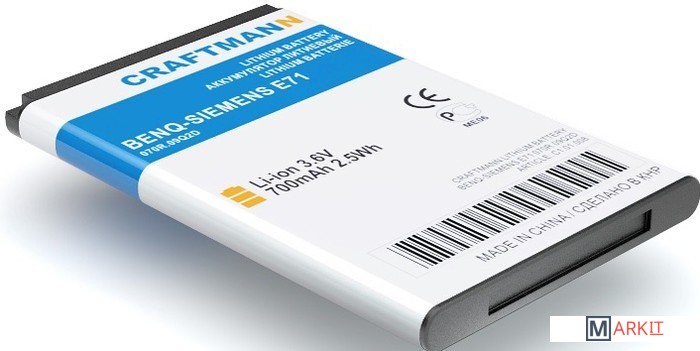 Markit » Аккумуляторы для телефонов » Аккумулятор для телефона Craftmann C1.01.008 (совместим с Benq-Siemens EBA-130)