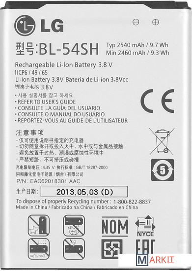 Markit » Аккумуляторы для телефонов » Аккумулятор для телефона Копия LG BL-54SH