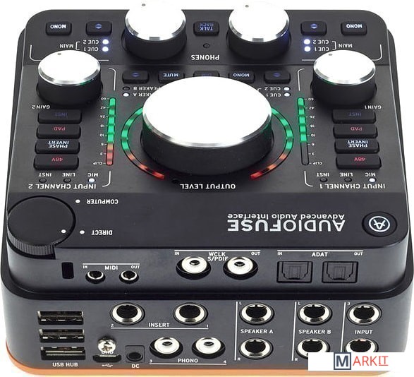 - кабель (microUSB - 2xUSB Type-A)- адаптер питания- набор переходников под разные типы розеток- два переходника 2.5 мм - MIDI- комплект VST/VSTi плагинов AudioFuse Creative Suite- документация |