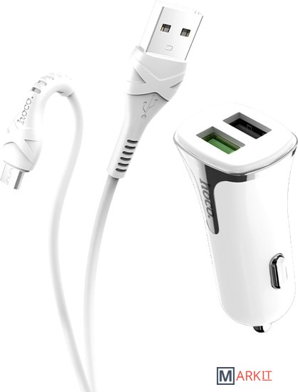 Markit » Зарядные устройства » Автомобильное зарядное Hoco Z31 microUSB (белый)