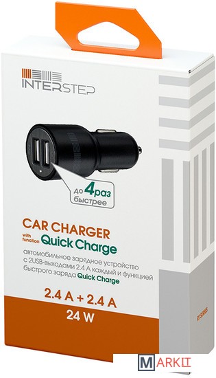 Markit » Зарядные устройства » Автомобильное зарядное InterStep IS-CC-2USB2QCRT-000B201