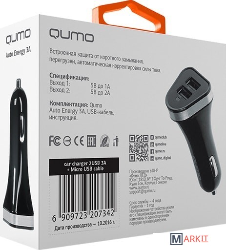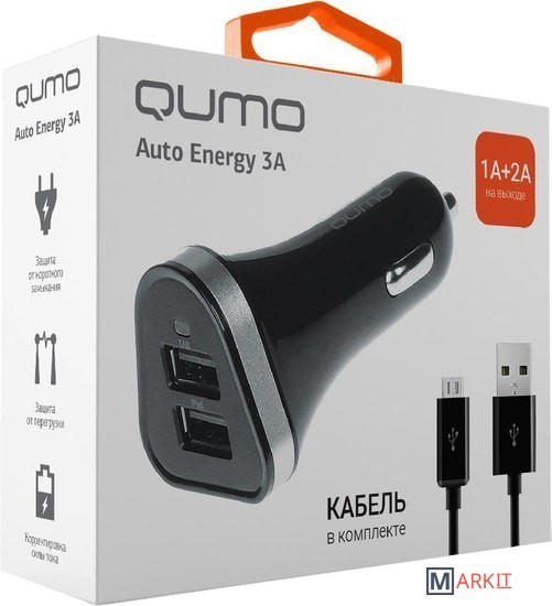 Markit » Зарядные устройства » Автомобильное зарядное QUMO Auto Energy 3A + кабель microUSB