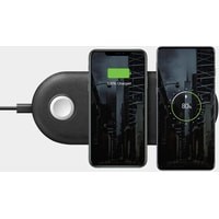 EnergEA WiDisc Trio 3-in-1 представляет собой беспроводную зарядную станцию на три устройства: смартфон с поддержкой индукционной зарядки стандарта Qi, умные часы Apple Watch и беспроводные наушники в зарядном кейсе. Такое зарядное устройство удобно использовать как дома, так и на рабочем месте в офисе, оно позволит избавиться от лишних проводов и оптимизировать пространство на рабочем столе или прикроватном столике. Зарядное устройство выполнено в минималистичном компактном дизайне и отлично впишется в интерьер жилой комнаты, спальни или офиса. При этом, благодаря скромным размерам, не займет много места. Мощность зарядки составляет 5 Вт/7.5 Вт/10 Вт. В комплект включен кабель USB Type C. Конструкция EnergEA WiDisc Trio 3-in-1 не предусматривает модуль для зарядки смарт-часов Apple Watch, для этих целей используется штатный кабель, который аккуратно устанавливается в корпус зарядного устройства. Немалым достоинством является и простота использования зарядки EnergEA WiDisc Trio 3-in-1: вы просто кладете смартфон, часы или наушники на поверхность зарядного устройства, не задумываясь о правильности расположения гаджета. Противоскользящее покрытие из высококачественной искусственной кожи предотвратит скольжение и случайное падение заряжаемых устройств. Максимальная выходная мощность зарядного устройства составляет 10 Вт, что будет достаточным для быстрой зарядки портативных устройств. Прочные и износостойкие материалы, из которых изготовлена зарядная станция, обеспечат продолжительный срок службы. Имеется встроенная интеллектуальная защита от перегрузок, перегрева, короткого замыкания, которая гарантирует безопасность зарядки ваших гаджетов, а также обеспечивает ускорение процесса зарядки на 40%. С зарядной станцией EnergEA WiDisc Trio 3-in-1 вы несомненно оцените все достоинства беспроводной зарядки и избавитесь от надоевших проводов, при этом не беспокоясь о сохранности своих мобильных устройств.