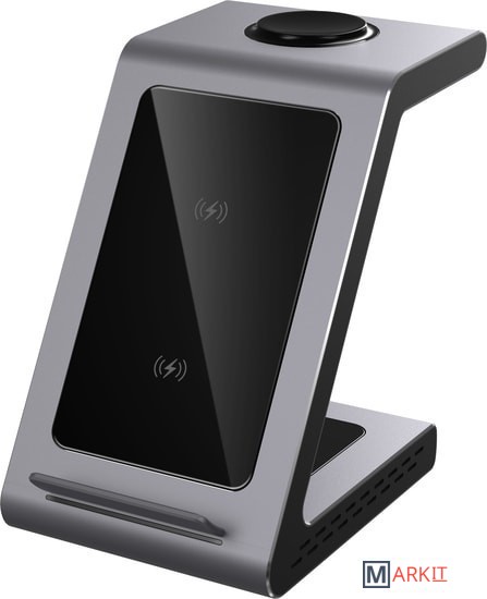 Беспроводная зарядная станция ReVolt A9 специально разработана для зарядки трех устройств одновременно. Она совместима со смартфонами Samsung и Android, а также со всеми устройствами, поддерживающими стандарт Qi. Имеет встроенную зарядку для смарт часов Galaxy Watch, а также модуль для зарядки беспроводных наушников.