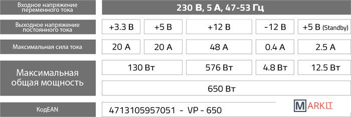 | Макс. ток по линии +12V | 48 А |