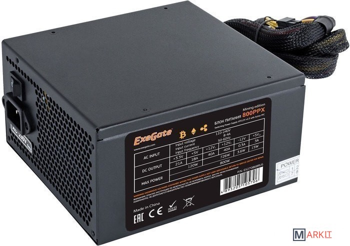 Markit » Блоки питания » Блок питания ExeGate 800PPX Mining Edition