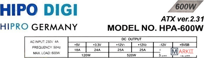 Markit » Блоки питания » Блок питания Hipro HPA-600W 600W