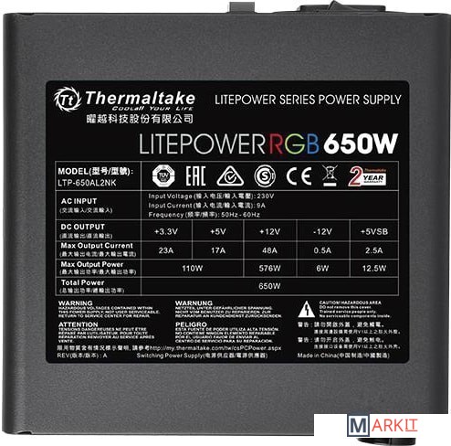 Markit » Блоки питания » Блок питания Thermaltake Litepower RGB 650W LTP-650AL2NK