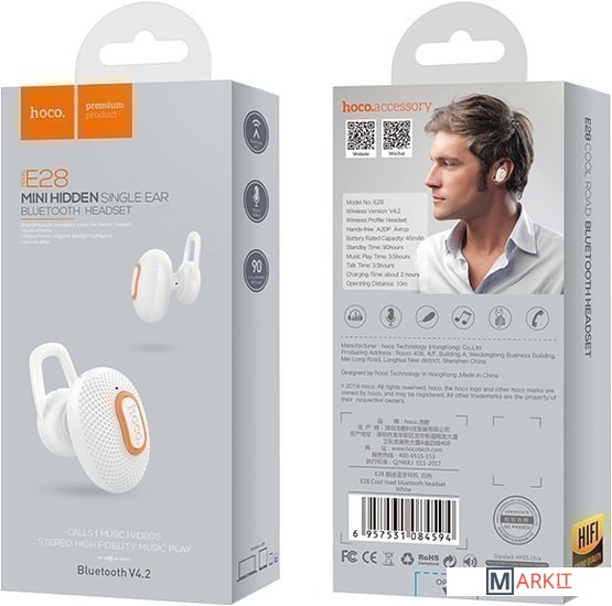 Markit » Bluetooth-гарнитуры » Bluetooth гарнитура Hoco E28 (белый)