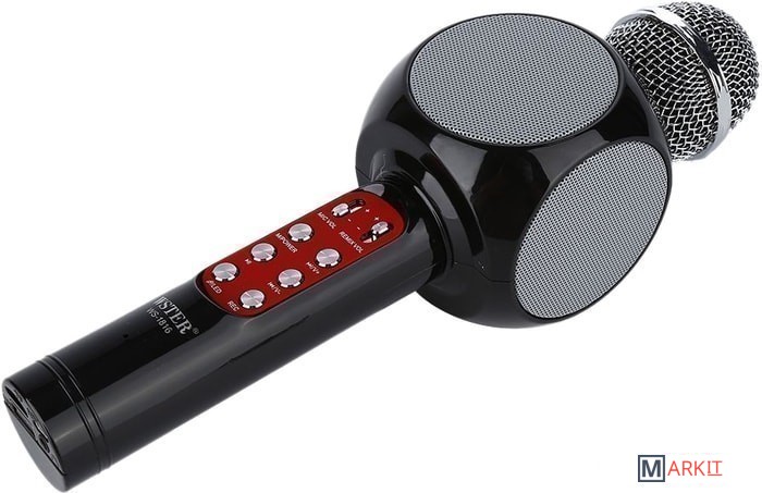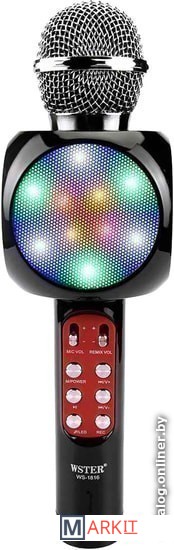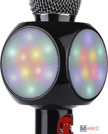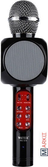 Ручной микрофон с аудио модулем и LED подсветкой, встроенный динамик.Модель WS-1816 оснащена беспроводным модулем Bluetooth, FM радиоприемником, слотом USB, TF и microUSB для чтения/трансляции музыкальных файлов.