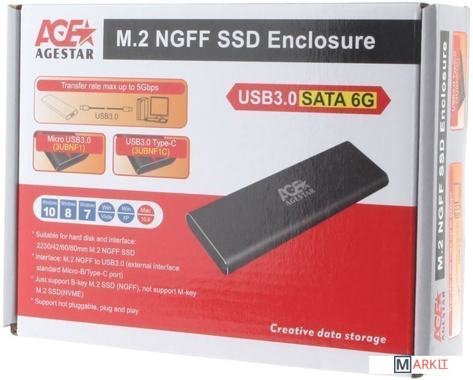 Markit » Боксы для накопителей » Бокс для накопителей M.2 AgeStar 3UBNF1C