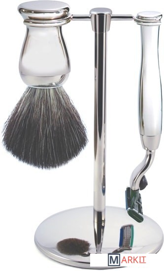 Хромированный набор из помазка, бритвы и подставки, который включает в себя все для комфортного и продуктивного бритья. Бритвенный станок оснащен системой Mach3. Все металлические элементы бритвы сделаны из высококачественной нержавеющей стали и покрыты никелем для придания особого блеска и дополнительной стойкости к коррозии. Помазок из новой коллекции с ворсом Black Synthetic Fibre. Набор поставляется в подарочной упаковке.