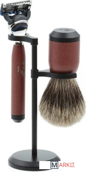Бритвенный станок, совместимый с кассетами Gillette Fusion (одна кассета в комплекте).Помазок с барсучьим ворсом.Подставка из металлического сплава.