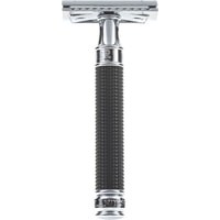 Классическая Т-образная бритва Edwin Jagger с закрытым гребнем. Сделана из хромированной латуни. Ручка выполнена в черном цвете. В комплект входит одно бесплатное лезвие Feather. Ручка выполнена в элегантном черном цвете, а также имеет рельефную поверхность, выполненную в стиле 3D Diamond — уникальной технологии «Edwin Jagger». Такая поверхность обеспечивает отличное сцепление бритвы с мокрой рукой. Станок среднего размера. Общая длина бритвы 9,3 см. Длина ручки 8,5 см.