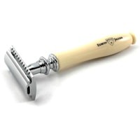 Премиальный т-образный станок Chatsworth английского бренда Edwin Jagger с ручкой из смолы цвета слоновой кости. Все металлические элементы бритвы сделаны из высококачественной нержавеющей стали и покрыты хромом для придания блеска и дополнительной долговечности. Поставляется в фирменной упаковке Edwin Jagger, с 5-ю лезвиями.