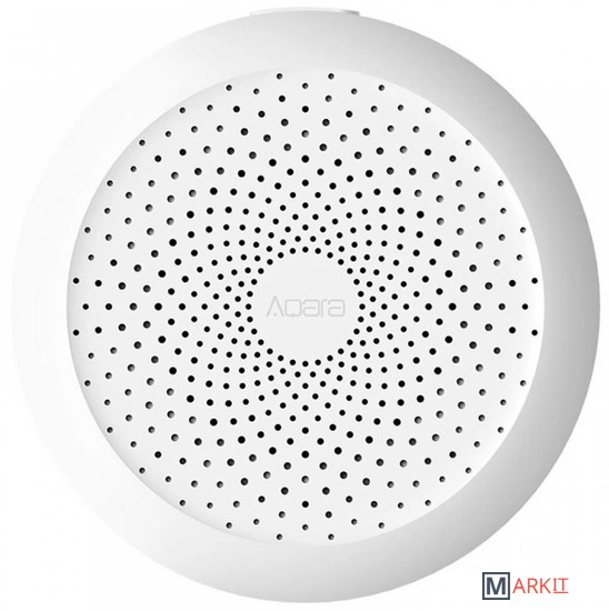 Центр умного дома объединяет устройства Aqara по энергоэффективному протоколу Zigbee – принимает сигналы датчиков и выключателей, отправляет команды розеткам и лампочкам. Хаб работает с Apple HomeKit. Если подключить его к экосистеме Apple, то в приложение Apple Home станут доступны все устройства Aqara.Кроме основной функции, Aqara Hub служит ночником. Восемнадцать LED лампочек расположены за рассеивателем света. В приложении Aqara можно настроить их цвет и яркость.Встроенный динамик может быть настроен в качестве будильника или сигнализации. Вместе с беспроводной кнопкой Aqara, хаб послужит умным дверным звонком.