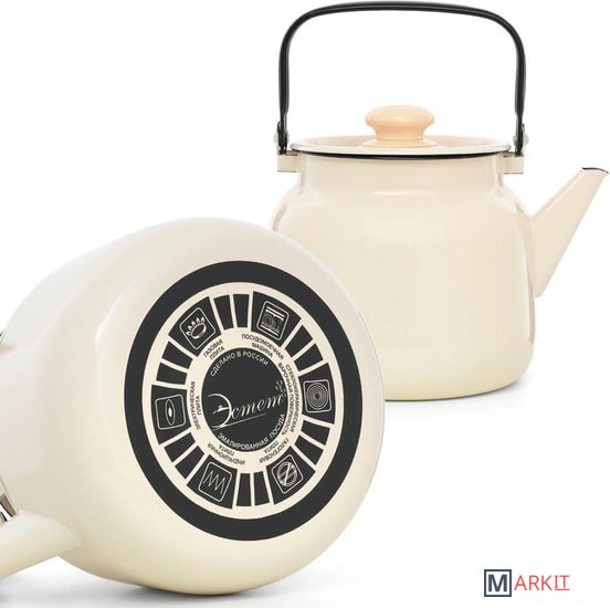 Чайник Эстет изготовлен из высококачественного стального проката и покрыт стеклокерамической эмалью. Внутри и снаружи - трехслойное глянцевое эмалированное покрытие. Эмалевое покрытие, являясь стекольной массой, не вызывает аллергию и надежно защищает пищу от контакта с металлом. Кроме того, такое покрытие долговечно, оно устойчиво к механическому воздействию, не царапается, а стальная основа практически не подвержена механической деформации, благодаря чему срок эксплуатации увеличивается. Крышка с эмалированным покрытием оснащена удобной ручкой. Подходит для всех типов плит, включая индукционные. Можно мыть в посудомоечной машине.