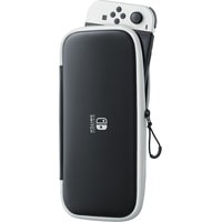 В данный набор входит чехол для переноски либо Nintendo Switch, либо консоли Nintendo Switch – OLED-модель, а также защитные пленки для экранов той и другой консоли. В чехле предусмотрено место для хранения пяти игровых карт Nintendo Switch и двух ремешков Joy-Con. Чехол также можно использовать в качестве подставки для консоли.