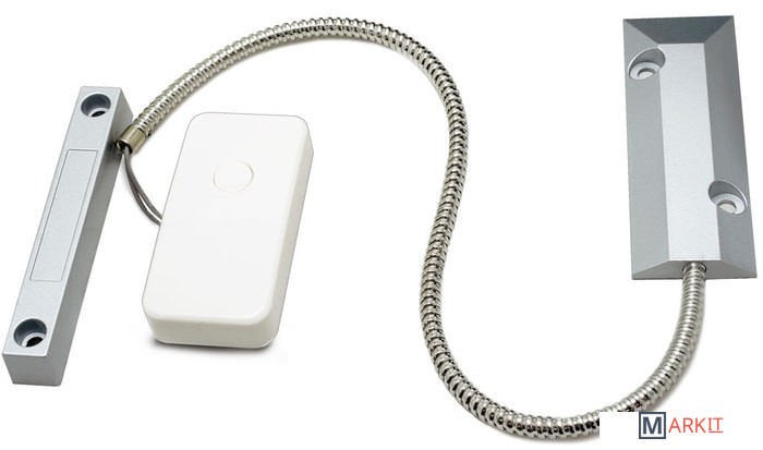 Беспроводной датчик (магнитоконтакт) металлической двери для охранных систем.