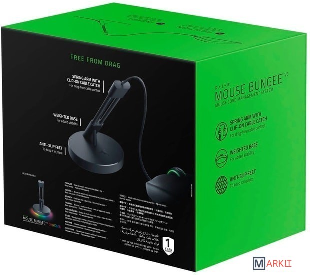 Фиксатор кабеля на Razer Mouse Bungee V3 имеет резиновое покрытие и подходит для большинства резиновых, плетеных и паракордовых кабелей мыши. Пружинный рычаг позволяет беспрепятственно перемещать мышь, удерживая кабель приподнятым над поверхностью мыши.Razer Mouse Bungee V3 имеет утяжеленное основание с прорезиненным покрытием, которое гарантирует, что держатель кабеля мыши останется на месте и в вертикальном положении во время напряженного, беспокойного игрового процесса.Эта модель продукта оснащена подсветкой Razer Chroma RGB.