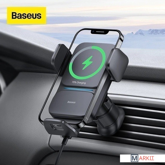 Markit » Аксессуары для салона автомобиля » Держатель для смартфона Baseus Wisdom Auto Alignment Car Mount Wireless Charger CGZX000001