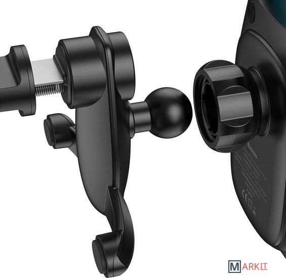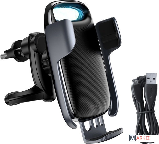 Выходная мощность беспроводной зарядки составляет 15 Вт. Оснащен сенсорной кнопкой для разжатия зажима и подсветкой, выполняющей роль индикатора заряда устройства.