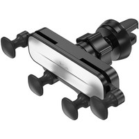1. Материал: ABS + алюминиевый сплав + силикон.2. Поверхность: текстурирование + оксидирование.3. Размер: 115*44*90мм. Вес: 47г.4. Подходит для мобильных телефонов 4.5-7.0 дюймов (ширина 64-85мм).5. Крепление: воздуховод автомобиля.