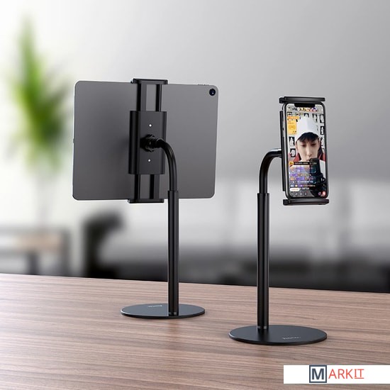 Подходит для мобильных телефонов и планшетов 4.7-10 дюймов.Гибка штанга, простая настройка угла наклона.