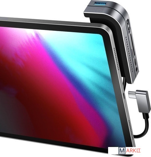 Baseus Bend Angle No.7 Multifunctional Type-C CAHUB-WJ0G представляет собой USB-концентратор, созданный специально для совместной работы с планшетом iPad Pro. Он оснащен портом USB 3.0, разъемом HDMI с поддержкой 4K, слотами для карт памяти SD/MicroSD, а также сквозным портом USB-C и аудиоразъемом 3.5 мм. Хаб позволяет расширить возможности вашего планшетного компьютера, оснащенного всего одним разъемом USB-C.