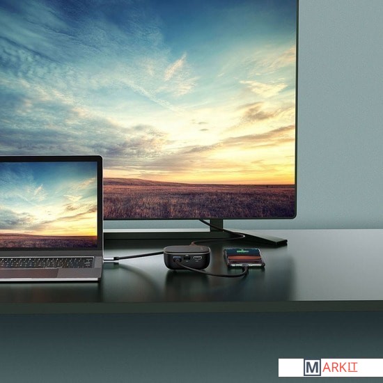 | Все разъемы на адаптере | USB-A 3.2 Gen1 (5 Гбит/с), HDMI, RJ-45, USB-C (только для зарядки) |