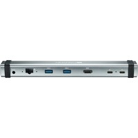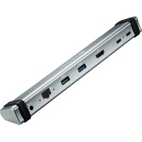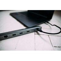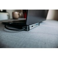 В этот универсальный хаб для USB Type C включены все разъёмы, необходимые для ежедневной работы. Он обеспечивает высококачественное 4K HDMI-соединение с монитором, стабильное подключение по “Ethernet” скоростью в 1000 Мб/с, быструю передачу данных по USB 3.0 Type A, комбинированный аудиоканал для наушников и микрофона и 2 гнезда USB type C для подсоединения внешних устройств и зарядки. Стабильность подключения обеспечивает качественный ПВХ-кабель, а прочный алюминиевый корпус защищает от внешних повреждений. Хаб можно использовать в качестве док-станции, установив ноутбук сверху.
