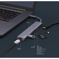 Основные особенности:- разъем USB Type-C с поддержкой протокола зарядки Power Delivery- два разъема USB Type-A со скоростью до 5 Гбит/с- разъем HDMI 4K/30Гц- разъем LAN 10/100/1000 Мбит/с- кардридер SD/microSD