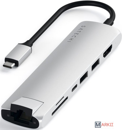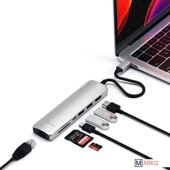 Возьмите свое рабочее место с собой в дорогу с ультрапортативным Satechi USB-C Slim Multi-Port with Ethernet Adapter. Он объединяет множество устройств в одно благодаря гигабитному сетевому разъему, поддержке видео 4K 60 Гц по HDMI, зарядке USB-C PD, двум портам USB-A 3.0 и устройствам для чтения карт памяти micro/SD.
