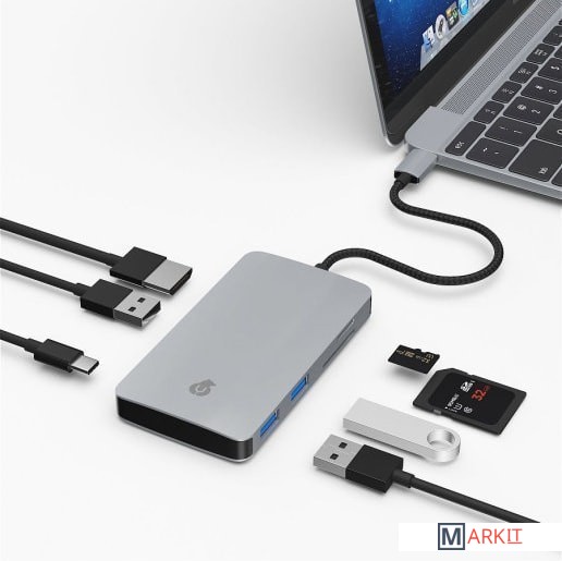 КОМПАКТНЫЙОдин из самых компактных адаптеров на рынке. Его размеры всего 10x7x1,5 см. Идеален для ежедневного использования, а также путешествий.СКОРОСТЬ РАБОТЫСкорость передачи данных: Хаб имеет 3 порта работающие по протоколу USB Super Speed USB 3.0 с высокой скоростью передавать данные, до 5 Гбит/c. Максимальная скорость зардки благодаря порту USB-C Power Delivery вы сможете быстро заряжать ваш MacBook на мощности до 100 ВТ.HDMI 4KС LINK 7-в-1 Вы можете с легкостью смотреть видео в высоком разрешении 4K. Продвинутый разъем HDMI поддерживает передачу медиафайлов с разрешением 4K x 2K при частоте 30 Hz.ДИЗАЙН И МАТЕРИАЛЫАлюминиевый корпус адаптера идеально дополняет MacBook по форме и цвету. Стильный кабель в тканевой оплетке обеспечит надежное и безопасное подключение вашего устройства. Идеальная эргономика, компактность и функциональность.НАДЕЖНЫЙВсе порты будут работать стабильно, не прерываясь даже под самой высокой нагрузкой, благодаря качественным комплектующим. Гарантируем надежность и долговечность. Срок службы не менее 5 лет.USB-C выход: одновременная передача данных по протоколу USB 3.0 (5Gbps) и зарядка PD до 100Вт (20В/5А)USB-С х 1 для передачи данных и зарядки до 100 Вт (20V/5A)USB-A х 1 поддержка BC 1.2, с возможностью зарядки до 7.5 Вт (5В/1.5А)HDMI: разрешение до 4Kx2K@30Hz