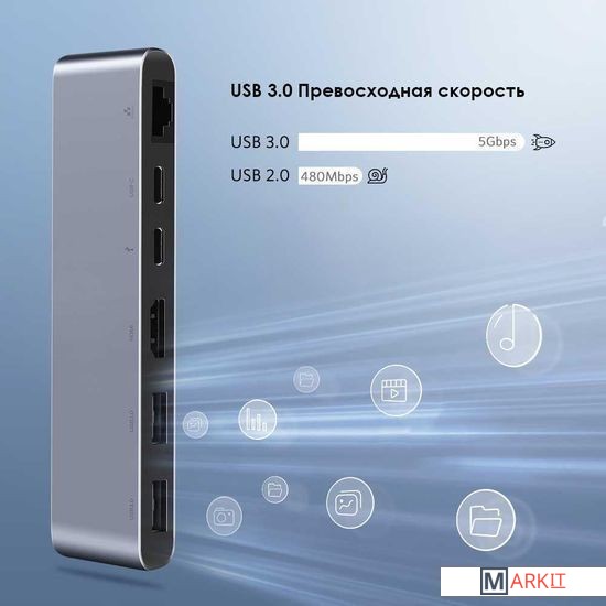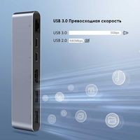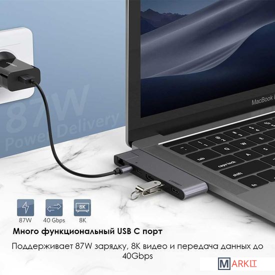 Поддержка чтения 2 карт одновременноВыход HDMI 1080PПоддержка зарядки PD 100 ВтУльтратонкий концентратор USB C предназначен для MacBook Air 2018/2019/2020, MacBook Pro 13.3/15.4/16 с 2020/2019/2018/2017/2016. Концентратор USB-C 5 в 1 с гладкой алюминиевой отделкой цвета «космический серый» идеально дополняет аксессуары Macbook.Thunderbolt 3 хаб поддерживает видеовывод в максимальном разрешении 8K, зарядку PD 100 Вт через USB C порт для питания Macbook, скорость передачи данных до 10 Гбит/с на устройства с поддержкой USB 3.1 Gen 2. Делайте все необходимое с помощью порта будущего.USB C - HDMI порт поддерживает видеовывод в разрешении 4K@30 Гц на внешний дисплей, HDTV, проектор, монитор для дублирования изображения на большой экран.USB C хаб-адаптер с двумя дополнительными USB 3.0 портами позволяет подключать к последней модели Macbook Pro/Air больше USB-устройств, таких как мышь, клавиатура, жесткий диск USB, накопитель с максимальной скоростью передачи данных до 5 Гбит/с.Ультратонкий и портативный адаптер можно носить в сумке, удобно использовать во время поездок. Подключайте и используйте. Алюминиевый корпус хорошо отводит тепло. UGREEN USB C хаб идеально подходит к вашему Macbook Pro и обеспечивает высокую производительность.Совместимые модели Macbook:MacBook Pro 16" 2019MacBook Pro 13'' 2016 / 2017 / 2018 / 2019 / 2020MacBook Pro 15'' 2016 / 2017 / 2018 / 2019MacBook Air 2018 / 2019 / 2020