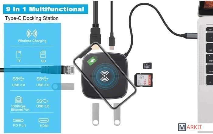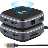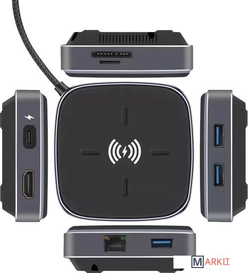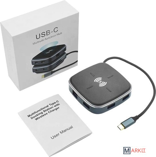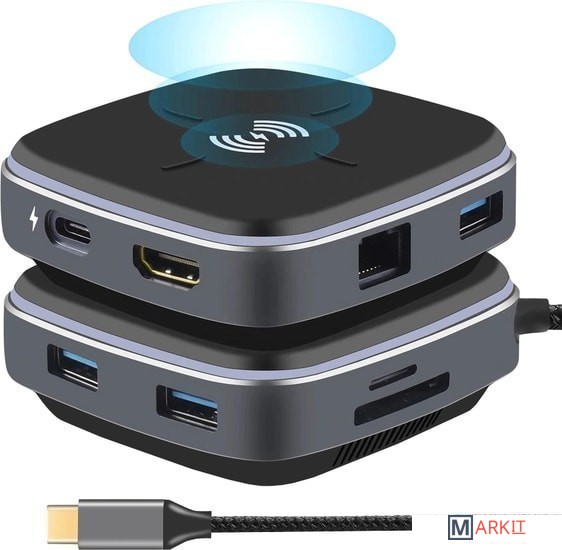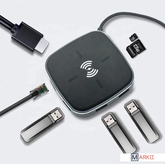 Док-станция многофункциональная 9в1 USB3.1 Type-C на RJ45+HDMI 4K+3xUSB3.0+PD+SD/TF Card + беспроводное зарядное устройство 10 Вт – удобный способ расширить возможности Вашего смартфона, например, сделав из него полнофункциональный компьютер для работы, игр или просмотра фильмов. Порт HDMI 4K предназначен для передачи изображения на телевизор, монитор или проектор с входом HDMI. Также к адаптеру возможно подключать периферийные устройства через порты USB3.0: флешка, внешний жесткий диск, картридер, клавиатура, мышь, др. адаптер / хаб, web-камера, принтер, сканер, МФУ и т.п. Док-станция поддерживает чтение карт памяти стандарта SD и TF.Порты:– порт HDMI – поддерживает разрешение FullHD 1920×1080 60Гц и UltraHD 4K/2K (3840х2160) 30Гц.– порты 3x USB3.0 Type-A – обеспечивают обмен информации на скорости до 5 Гбит/с. К порту возможно подключение периферийных устройств: флешка, внешний жесткий диск, картридер, клавиатура, мышь, др. адаптер / хаб, web-камера, принтер, сканер, МФУ и т.п.– картридер TF/SD – поддерживает чтение карт памяти стандарта SD и TF.– порты USB3.1 Type-С – для зарядки 5V 3A(Max) – быстрая зарядка. – порт RJ45 - максимальная скорость 1000 МБ/сБеспроводное зарядное устройство - 10 Вт может заряжать только следующие модели смартфонов:- IPhone: 12 / 12 Pro / SE / 11 / 11 Pro /11 Pro Max /Xs Max / XR / XS / X- Samsung: Galaxy S20 / S20 + / S20 Ultra / S10 / S10+ / S10e / S9 / S9+- Huawei: P30 / 30Pro / 40 / 40Pro / AirPods / AirPods ProНоутбуки:– MacBook Pro 13”/15”, 2015 / 2016 / 2017 / 2019 / 2020– MacBook 2015 / 2016 / 2017 / 2019 / 2020– iMac / iMac Pro 2017 / 2019 / 2020– Google ChromeBook Pixel, Pixelbook Pen– Dell XPS 12 / 13 / 15, Precision 5510– HP Spectre X2, Spectre X360, EliteBook Folio G1, Elite X2 1012 G1, Envy 13, Pavilion X2– Lenovo ThinkPad T470, Yoga5 Pro, Yoga 900, Yoga 910, ThinkPad X1 Carbon 2017, Ideapad Air 12, Miix 720– Acer V15 Nitro, Switch Alpha 12, Spin 7– Asus ZenBook 3– Xiaomi Mi Notebook Air, Xiaomi Mi Notebook Pro– Huawei MateBook, MateBook X, MateBook XPro, MateBook E– Microsoft Surface Book 2– Sumsung Chromebook Plus / Galaxy TabPro SВнимание! Не все смартфоны с интерфейсом USB Type-C могут поддерживать передачу видеопотока, для этого порт USB Type-C должен поддерживать технологию “DisplayPort Alternate Mode” (DP Alt Mode).Пример совместимых смартфонов (список неполный):– Samsung Galaxy S8 / S8+, S9 / S9+, S10 / S10+, Note8, Note9, Note10, Note10+– Huawei P20 / P20 Pro, P30 / P30 Pro, P40 / P40 Pro, Mate 20 / Mate 20 Pro, Mate 10 / Mate 10 Pro– Xiaomi 10– LG G5, G6, G7– Microsoft Lumia 950 / Lumia 950XL– Google Pixel 2– Sony Xperia XZ / Xperia XZ2– OnePlus 5 / 6– ZTE Max XL, Blade Max 3– HTC U ULTRA, 10и более новые модели.