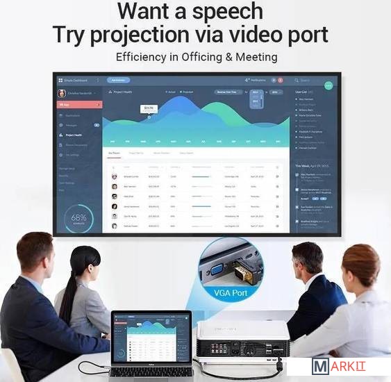 Все разъемы на адаптере USB-A 3.2 Gen1 (5 Гбит/с), USB-A 2.0, USB-C 3.2 Gen1 (5 Гбит/с), HDMI, VGA, RJ-45, 3.5 мм jack