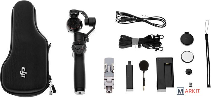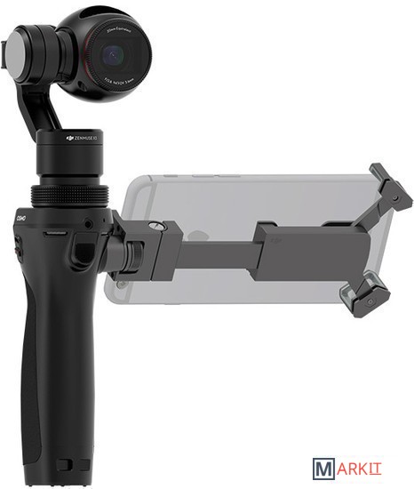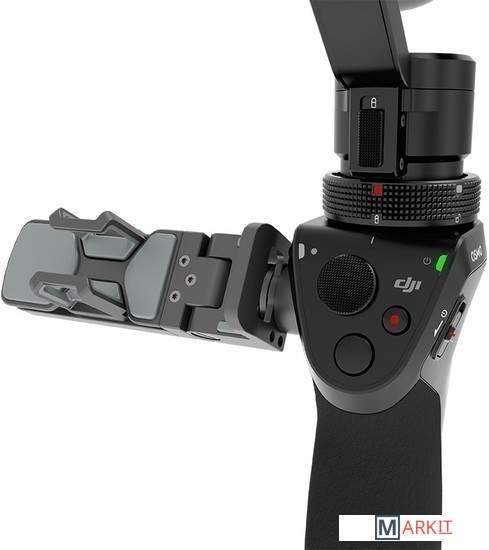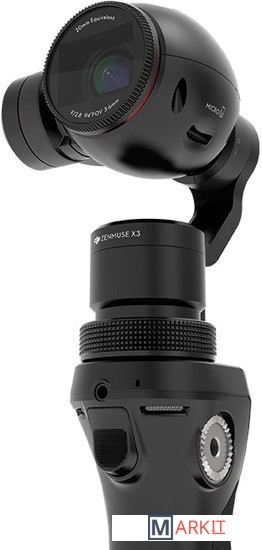 Трехосевой ручной стабилизатор с камерой X3/FC350H на базе сенсора Exmor R CMOS от Sony. Крепление DJJ Rosette сбоку рукояти позволяет закрепить мобильное устройство и использовать его в качестве видоискателя.