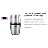 Максимальная скорость вращения ножей: 24000 об/мин ± 15%;В комплекте идут 2 чаши: для кофе и для специй;Объем чаши для специй: 200 мл;Длина шнура: 0.9 м;Размер устройства: 117х117х201 мм;Вес нетто: 1.1 кг.