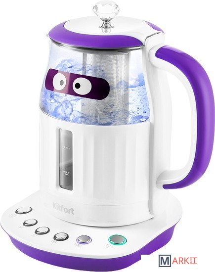 Электрический чайник Kitfort КТ-6129 может не только вскипятить воду, но и нагреть её до температур: 40, 70, 85 и 100°С, что очень удобно при заваривании различных сортов чая. У чайника есть функция поддержания температуры в течение 2 часов.Благодаря панели управления с 4 температурными режимами вы можете установить необходимую температуру для каждого сорта чая. Температура 40 °С пригодится для приготовления детского питания.В чайнике есть фильтр для заварки. Вам нужно только засыпать чайные листья в фильтр и залить воду. Чайник сам нагреет воду до нужной температуры и заварит чай в соответствии с выбранным сортом чая.Крышка чайника полностью съёмная. Это удобно для залива воды и очистки чайника. Фильтр крепится к крышке и легко моется после использования.Чайник КТ-6129 моментально притягивает взгляды, и это неудивительно, ведь ручка крышки чайника выполнена в виде бриллианта.Наша техника порадует вас не только своим функционалом, но и интересным дизайном! В любой момент вы можете отклеить креативный стикер без вреда для поверхности.
