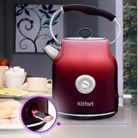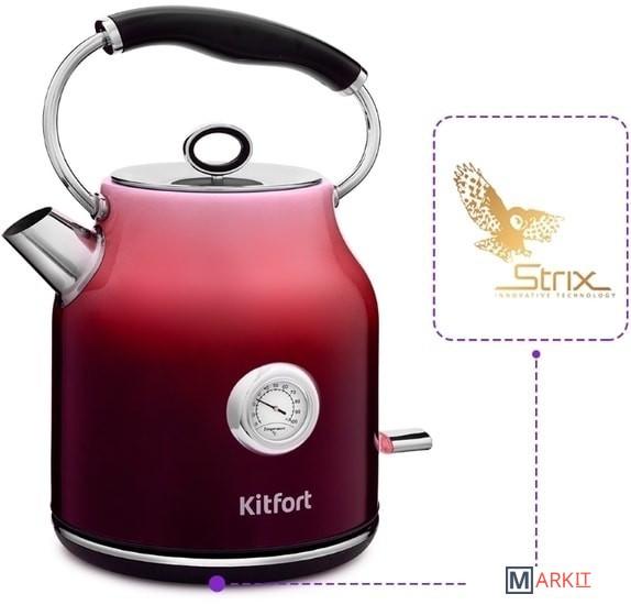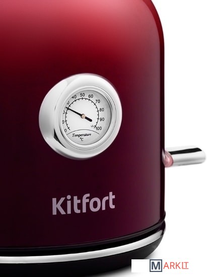 Чайник Kitfort КТ-679 имеет встроенный термометр, выполненный в винтажном стиле. Это очень удобно для заваривания различных напитков, для которых требуется определённая температура воды. Например, зелёный чай, белый чай, кофе и тд.