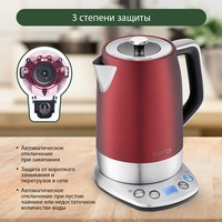 Съемный фильтр от накипиАвтоотключение при недостаточном количестве водыАвтоотключение при закипанииОтключение при снятии с подставкиБлокировка включения без водыЗвуковые уведомления