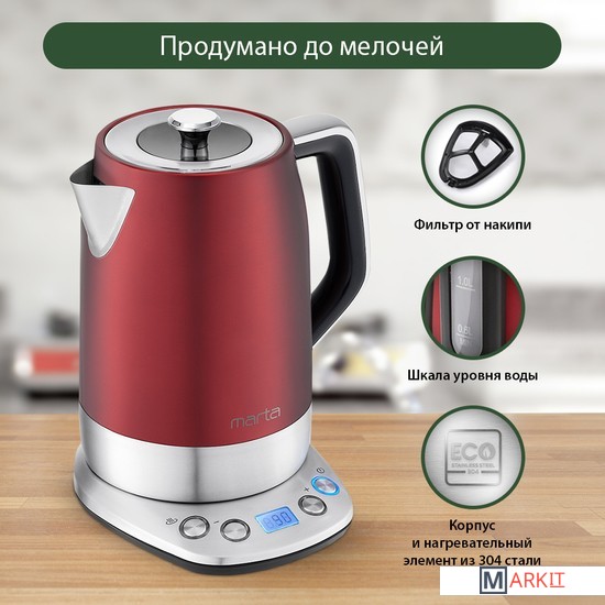 Markit » Электрочайники и термопоты » Электрический чайник Marta MT-4569 (бордовый гранат)
