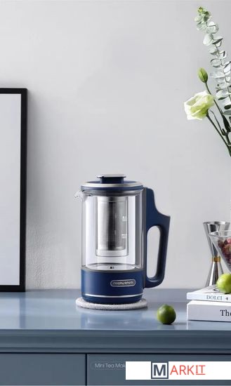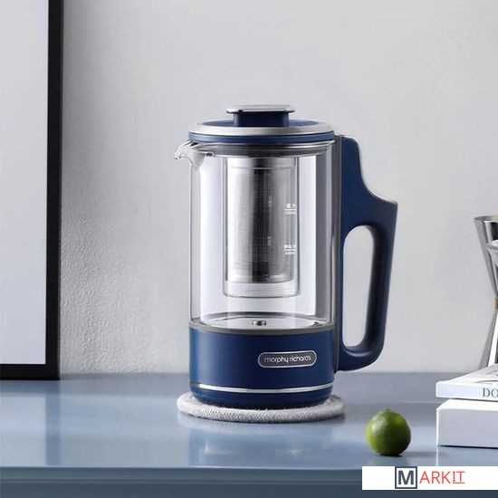 Богатый вкус листового чая, раскрытый в соответствии со всеми тонкостями чайной церемонии.Полезный лимонад или компот, охлажденный кубиками льда, прежде чем переливать в посуду.Небольшие порции еды для перекуса в походных условиях.Порция молочной каши из чайника – полезный завтрак вдали от дома.Офисная кулинария, которая не мешает коллегам – без шума и запахов.Бокал глинтвейна или пунша с идеальными пропорциями, как на изысканной вечеринке.Помимо разнообразных способов обработки ингредиентов, можно настраивать каждый день и напиток по своему усмотрению. Для этого предусмотрены: 3 режима нагрева чайника – 45°C, 80°C, 100°C и 3 варианта длительности поддержания температуры - 15 мин, 45 мин, 90 мин. Не все варианты температуры и времени комбинируются между собой – так, чайник откажется кипеть 90 мин при температуре 100°C. Подробнее подскажет само умное устройство.Интегрированный дизайн с сенсорным интерфейсом, встроенным в ручку чайника – чтобы отдавать команды одним прикосновением. Компактный корпус объемом 600 мл создан быть всегда под рукой. Его легко снять с подставки и захватить с собой, чтобы наслаждаться приготовленным напитком на важной встрече, во время прогулки с детьми или собакой, в перерывах между работой в саду. Это настоящий эксперт в области приготовления и раскрытия вкуса чайного листа.Ради надежности и качества фито чайника, который прослужит вам долгие годы, как фирменные долгожители техники Morphy Richards, отобраны самые безопасные и износоустойчивые материалы:Термоустойчивое кремниевое стекло графина и внутренней колбы – не боится нагревания и охлаждения, легко моется, не впитывает запахи.Фильтр и заварник из нержавеющей стали SUS304 – не содержат тяжелых металлов.Утолщенное стальное дно чайника – быстро нагревается, защищает от накипи и нагара.2 сменные крышки – для моментального тюнинга и выполнения различных операций с содержимым колбы и графина.